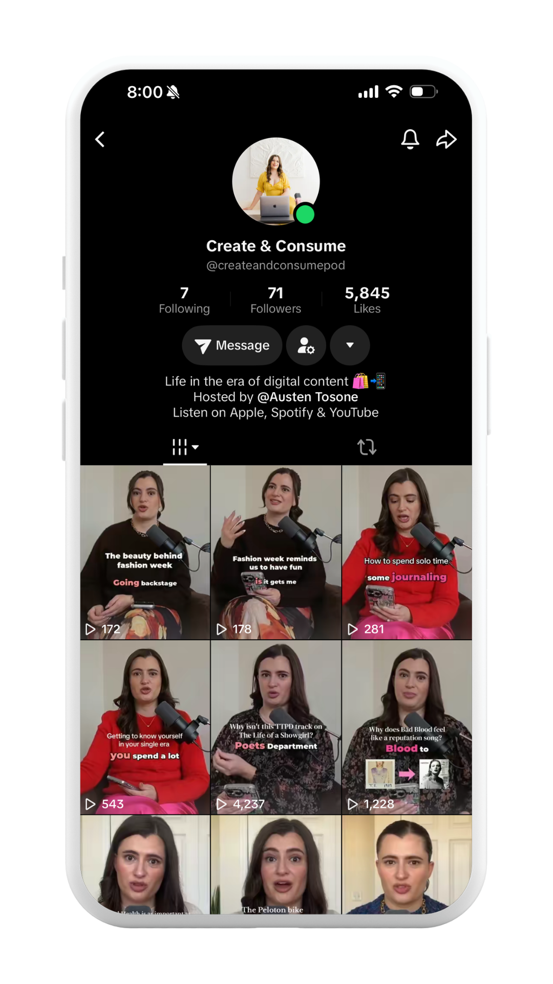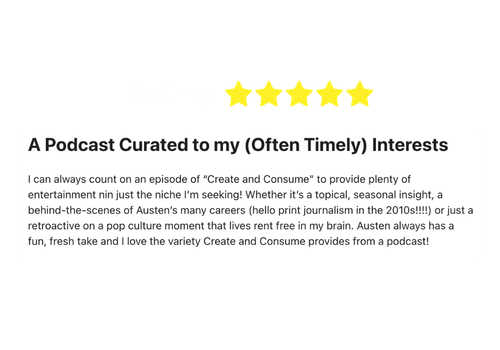 In a world of fast-paced content, listeners of Create & Consume will get to see more sides of host Austen Tosone on a personal level through candid conversations filled with entertainment and value.