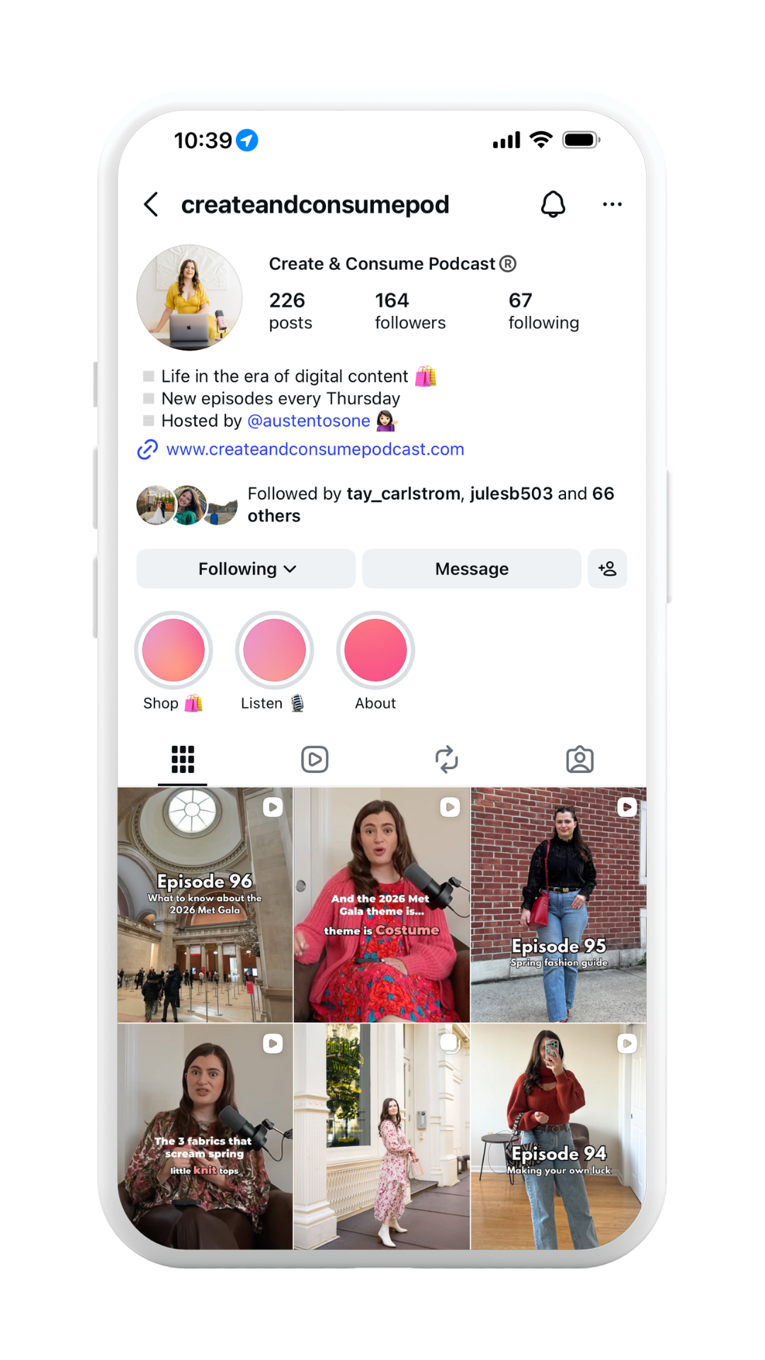 From fashion trends and beauty finds to stories from her previous career as a magazine editor in NYC, listen in for Austen’s hot takes and genuine thoughts about life in the age of scrolling, shopping, and all things social media.